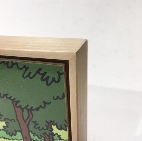 Laminado de una viñeta de tintin relacionado con todos los automóbiles que aparecen en sus cómics y aventuras. Enmarcado al estilo caja americana o de cajón , con madera de roble.