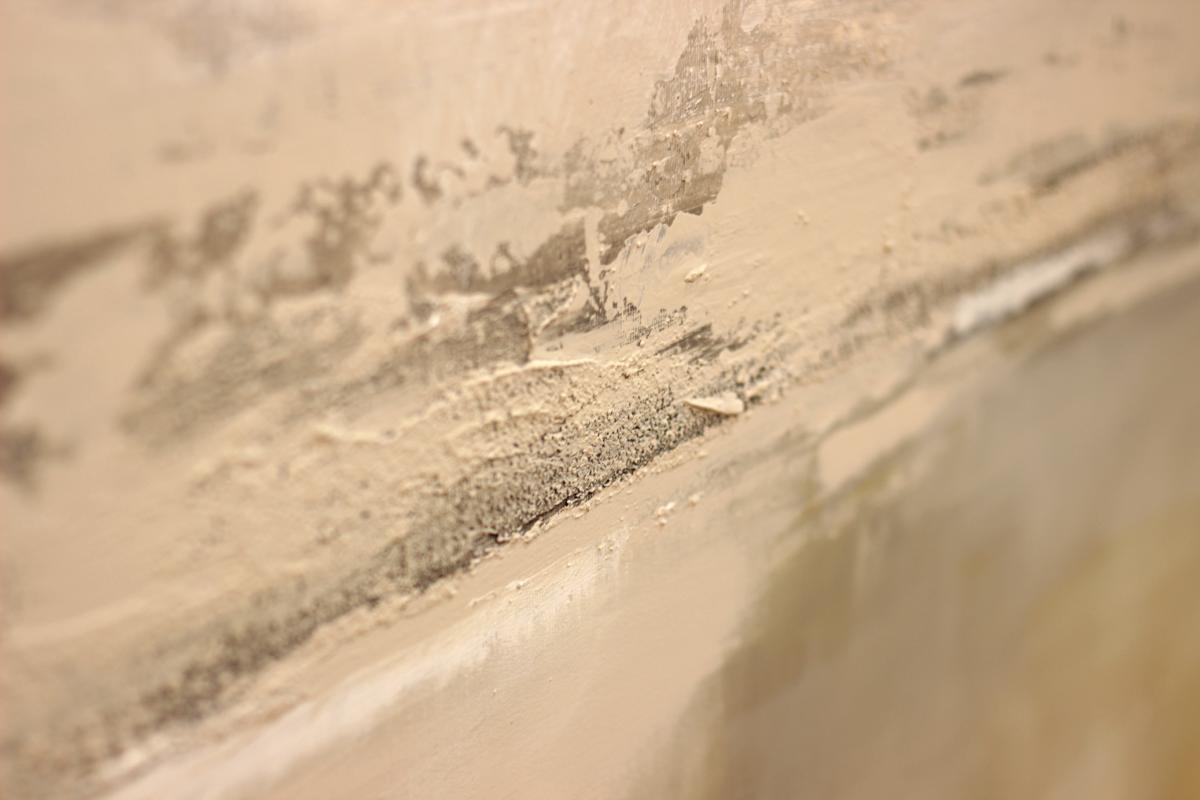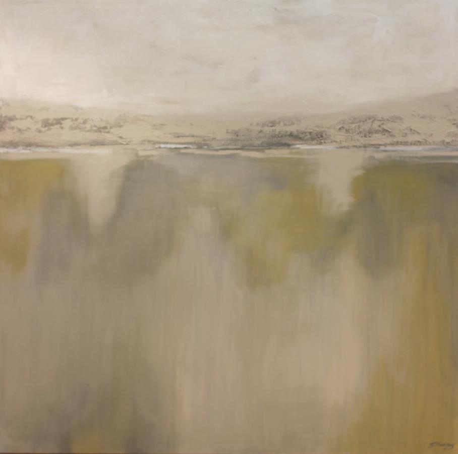 Tonos: blanco roto, gris, ocre, marrón. Cantos pintados siguiendo la linea de la obra..