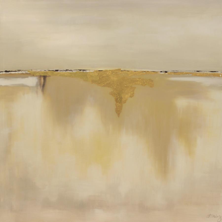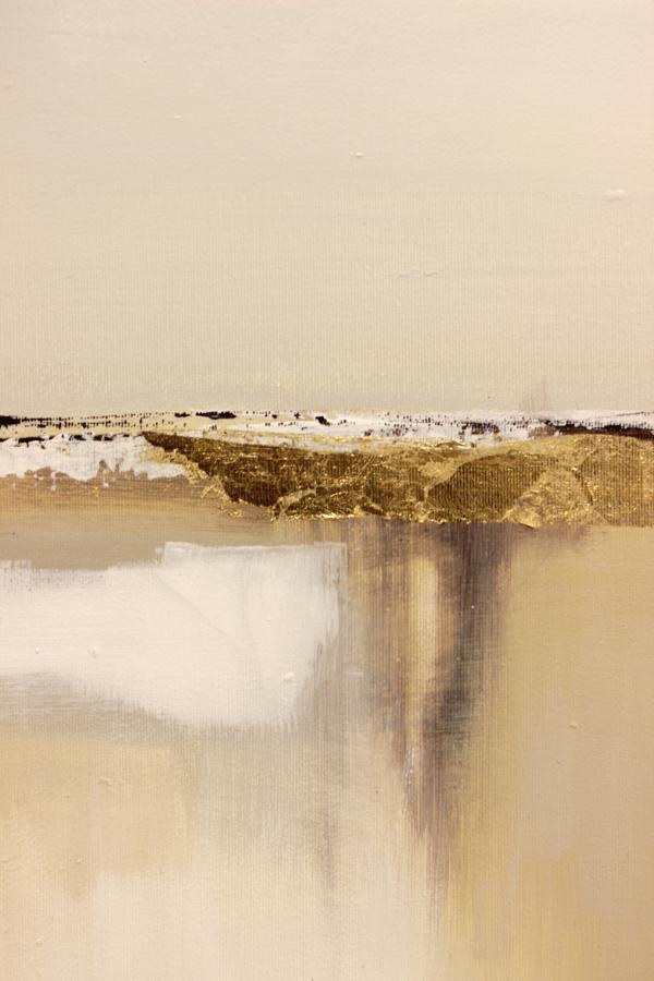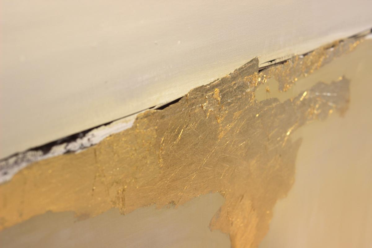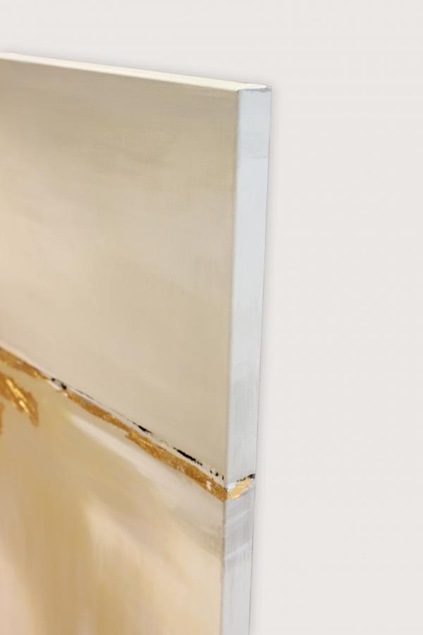 Tonos: blanco roto, pan de oro, ocres y marrón. Cantos pintados siguiendo el motivo de la obra.