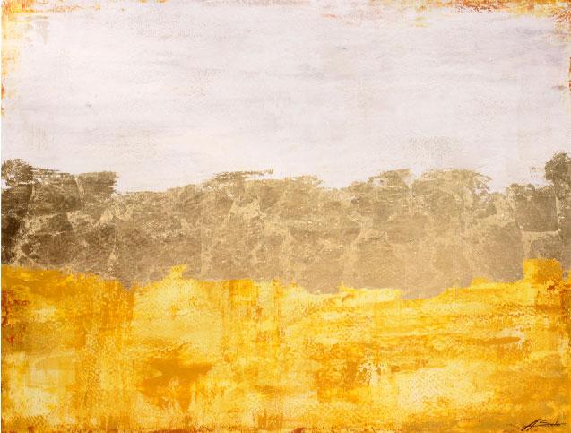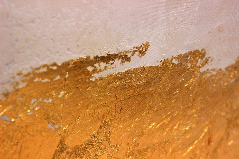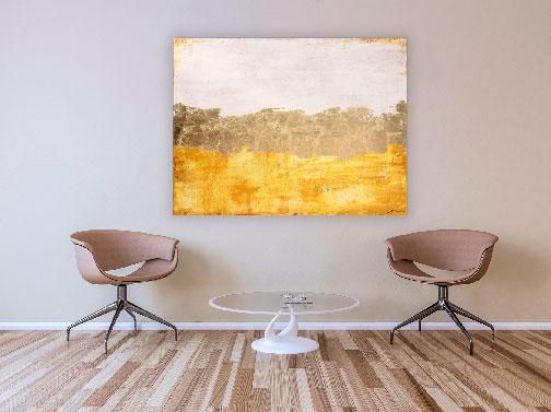 Cuadro original de estilo abstracto con tonos ocres, crema y dorado.