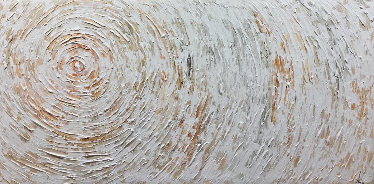 Pintado a mano sobre lienzo y montado en bastidor grueso.