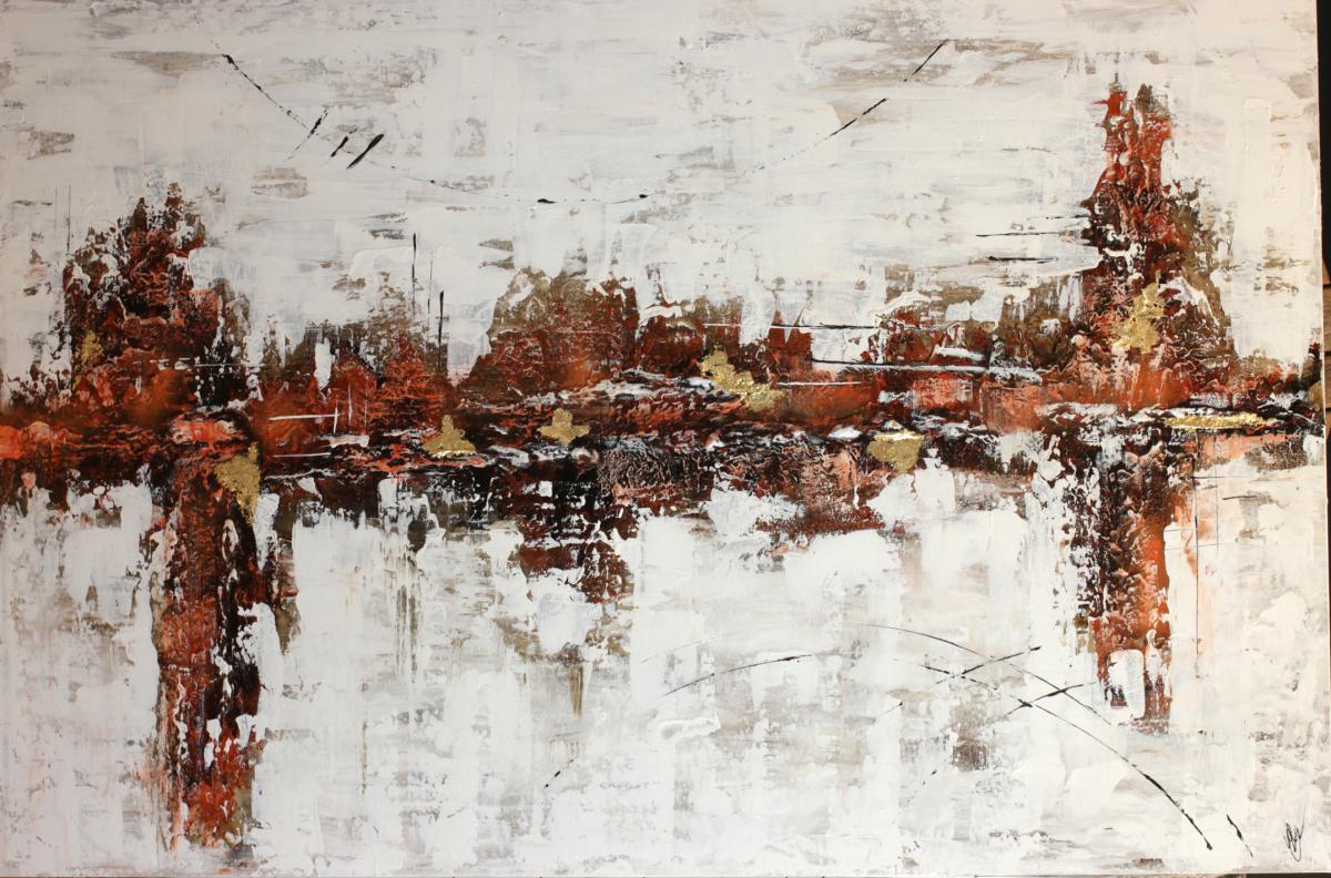Cuadro de estilo abstracto pintado sobre lienzo de tela y montado en bastidor de 3, 5cm.