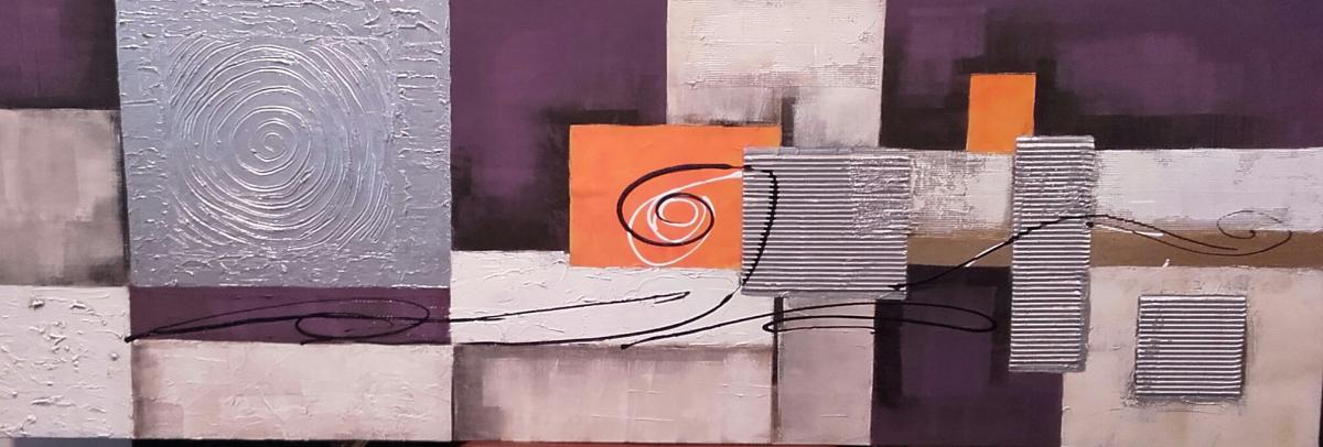 Cuadro " Rectángulos Lilas Naranjas " 150x50