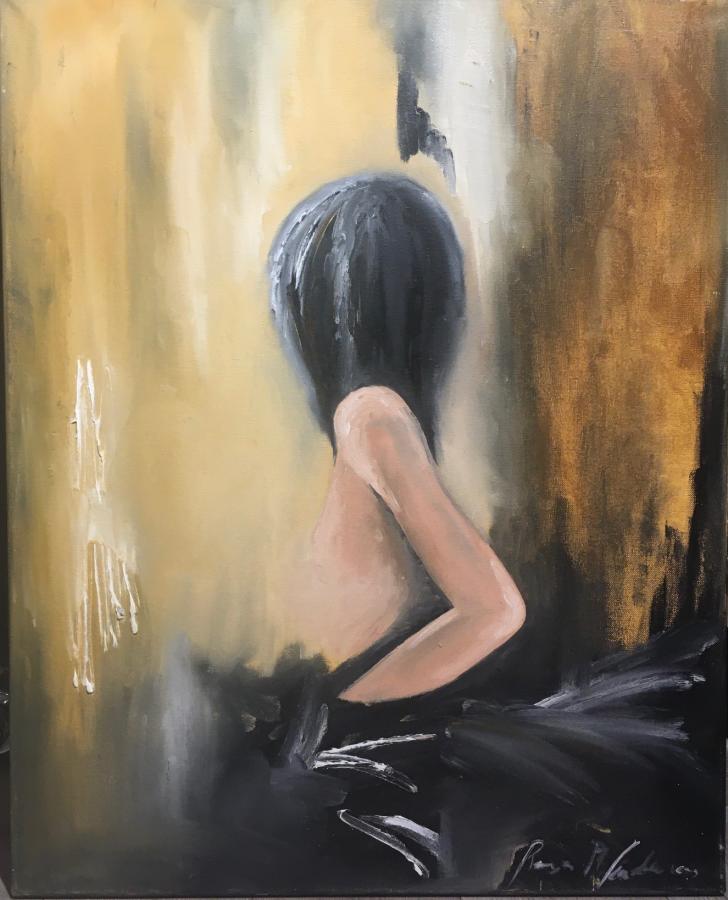 Dama en posición de espalda semi desnuda.