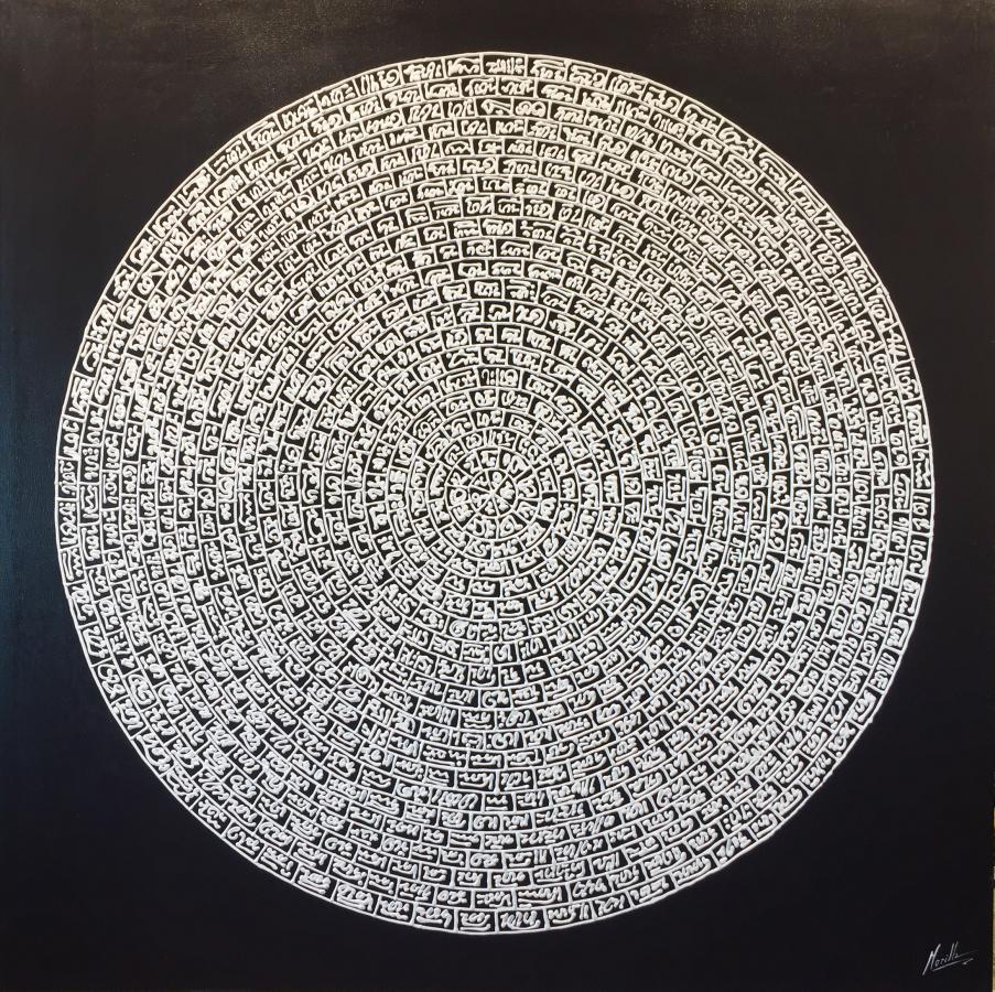 Pintado a mano al óleo sobre lienzo de bastidor grueso con fondo negro y detalles en plata o viceversa.