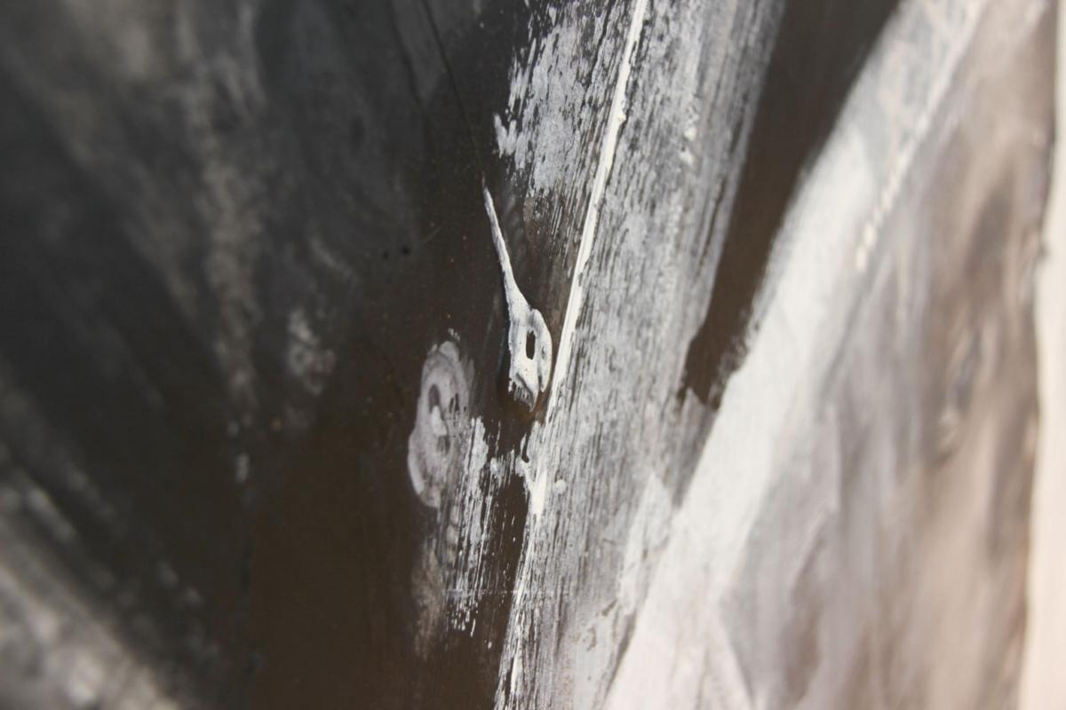 Cuadro original estilo collage, con texturas y colores claros en gama de grises y negros.