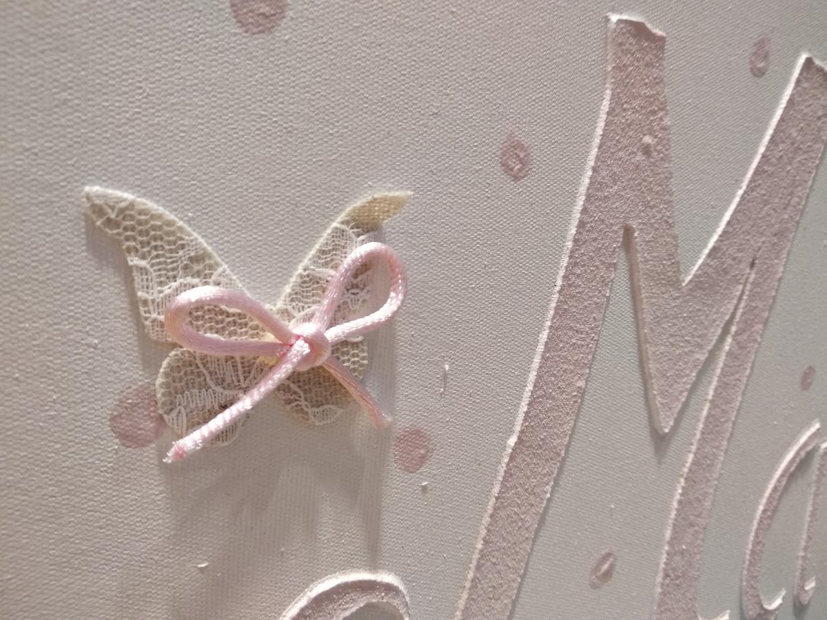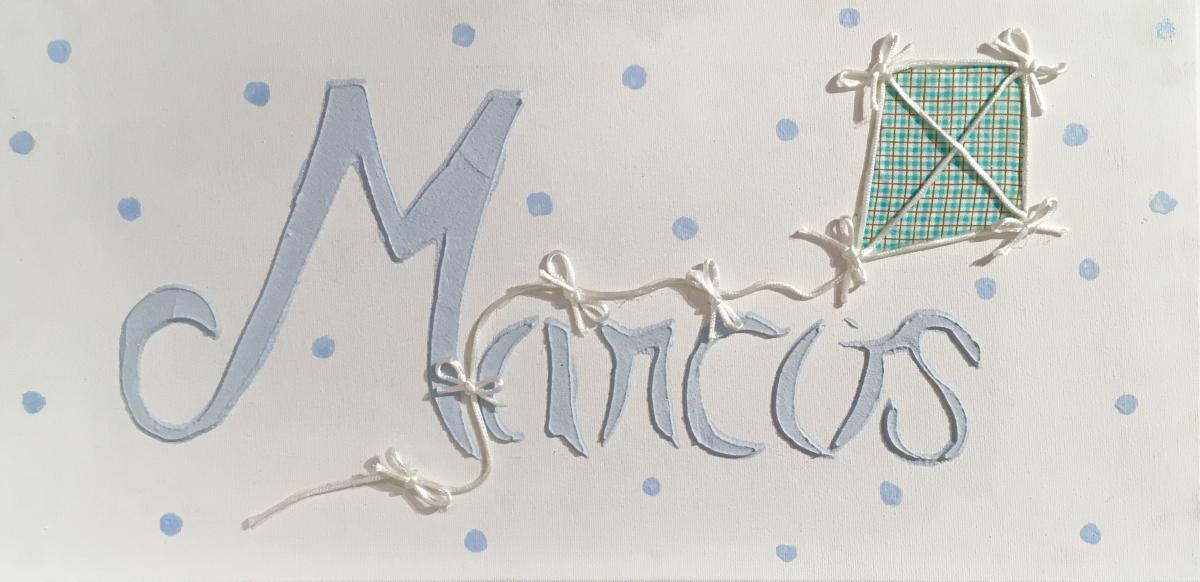Realizado a mano en pinturas y otros materiales de relieve ( ropa,cuerdas,botones,lazos...)