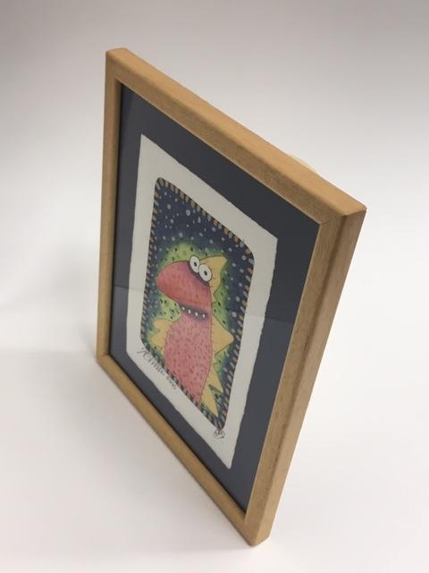 Enmarcado con moldura fina a color a conjunto con la lámina y cristal brillamte.