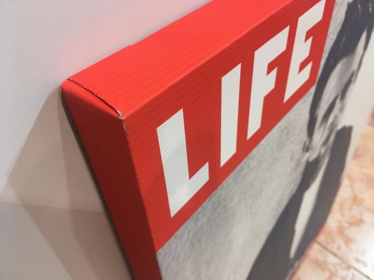 Impresion digital sobre tela y montado en bastidor grueso de la portada de la revista LIFE con James Dean de protagonista.