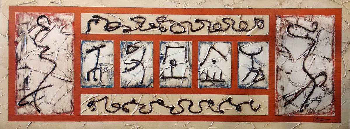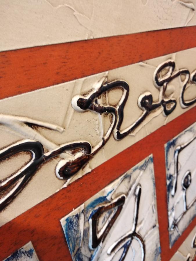 Cuadro original pintado sobre madera con relieves