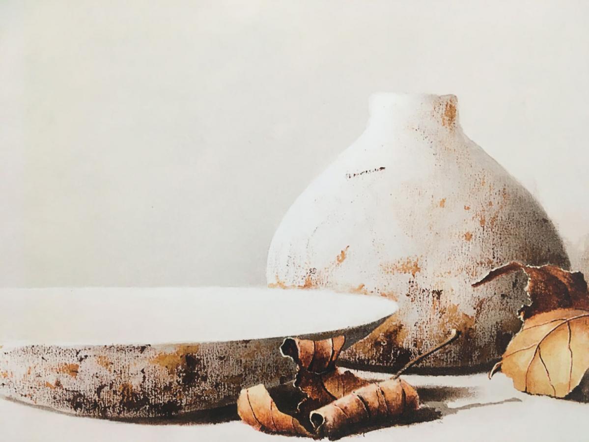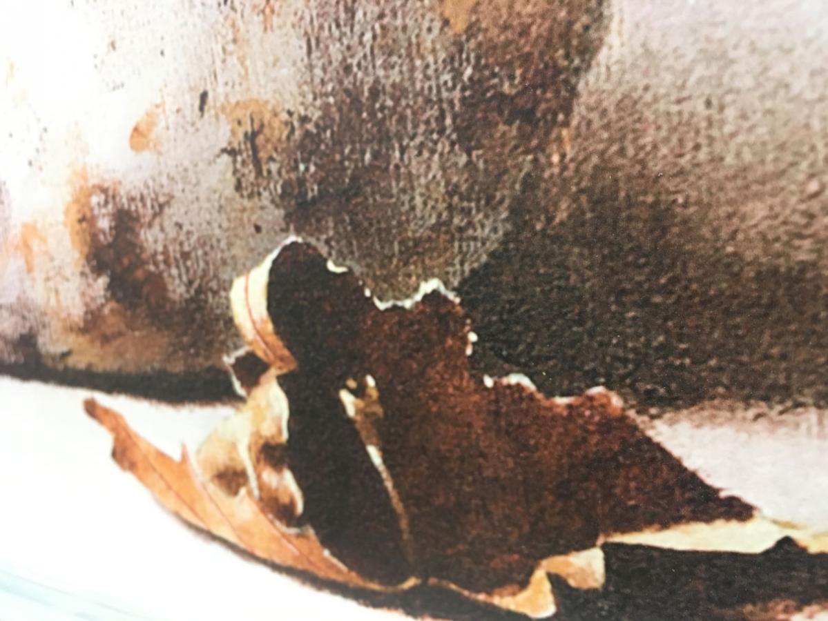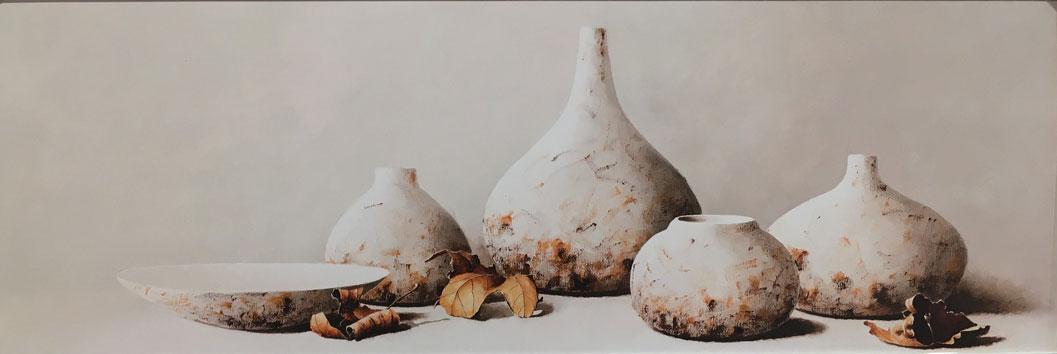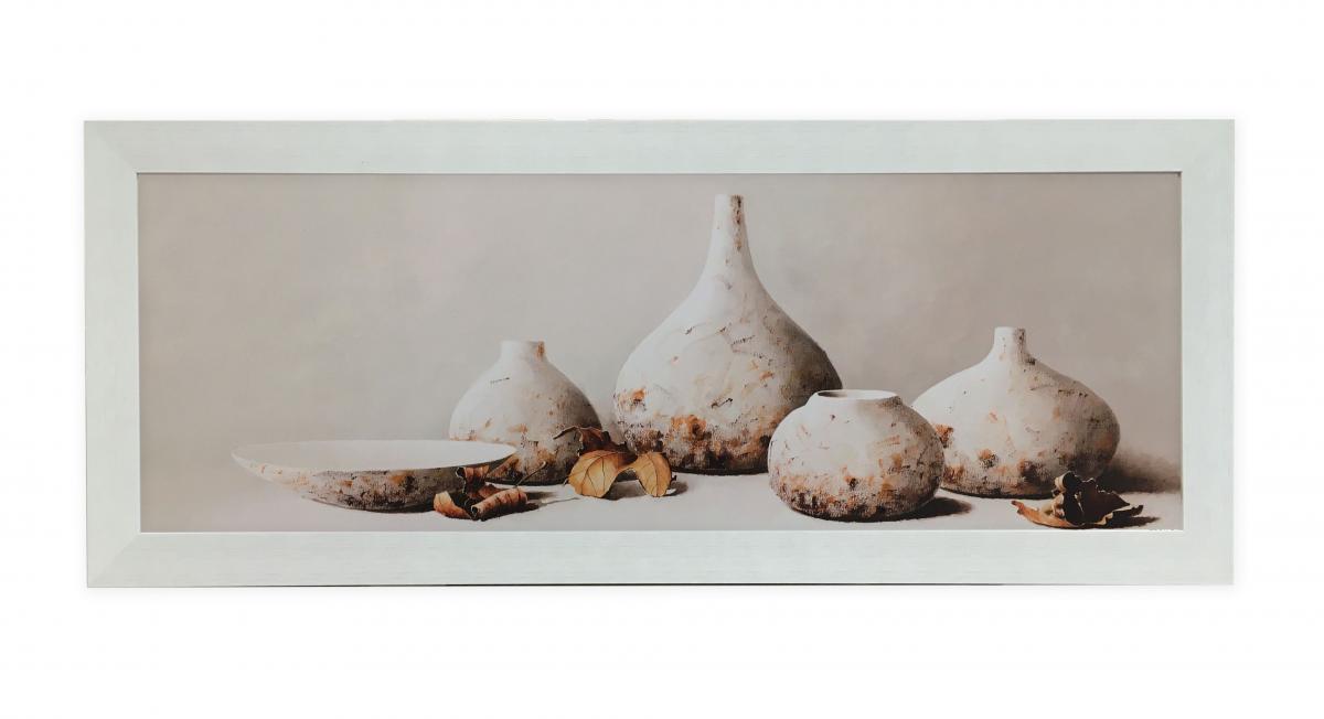 Reproducción en laminado sobre madera y enmarcado en moldura blanca de un Bodegón del autor Deveron.