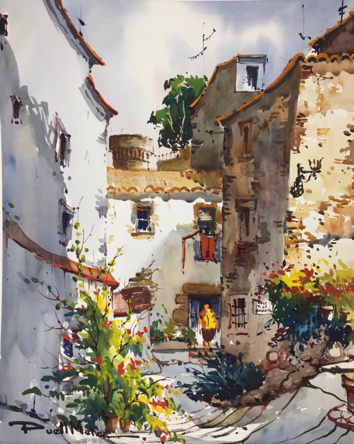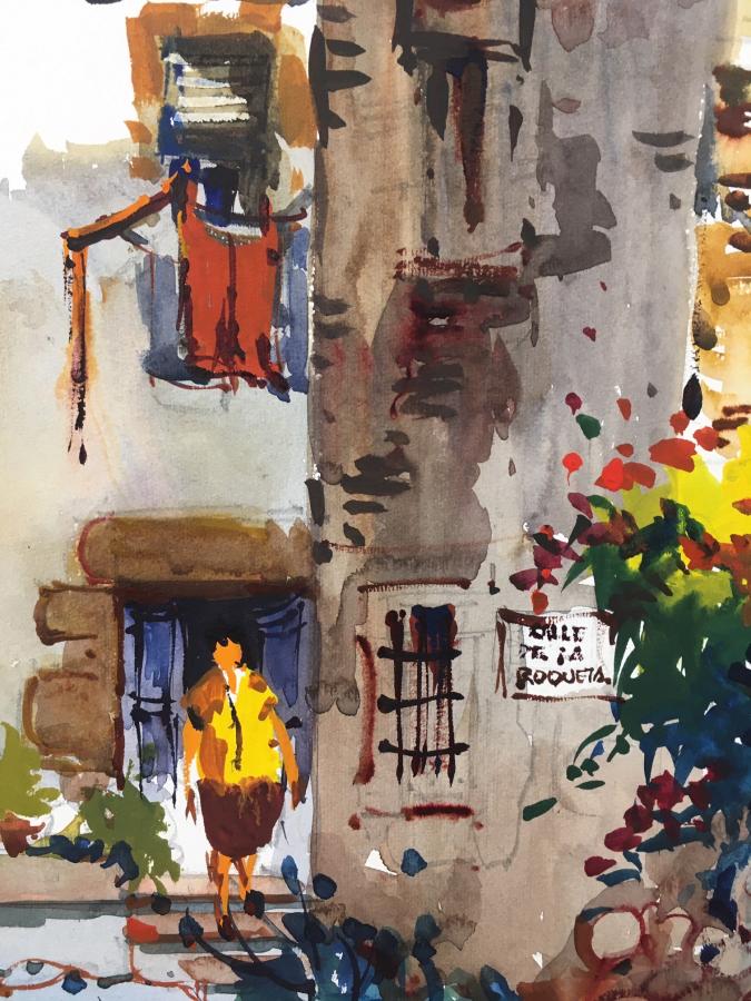 Acuarela original del pintor de Sabadellense Francesc Puell Melà.