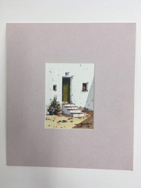 Lámina original del pintor J.Costa pintada con técnica mixta, acuarela y acrílico. Presentado con Passepartout lila pastel.
