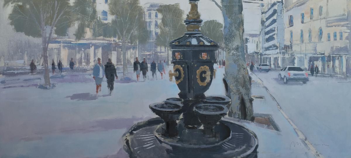 Cuadro original de la mítica fuente de Canaletas en las Ramblas de Barcelona.