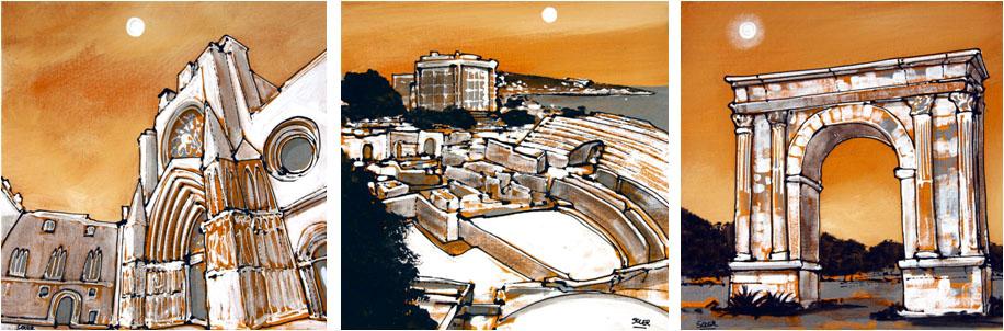 Colección de tres cuadros originales de algunos de los lugares emblemáticos de Tarragona.