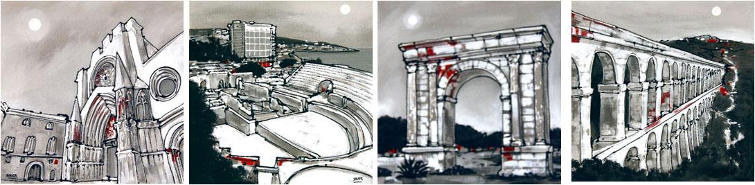 Colección de cuatro cuadros originales de algunos de los lugares emblemáticos de Tarragona.