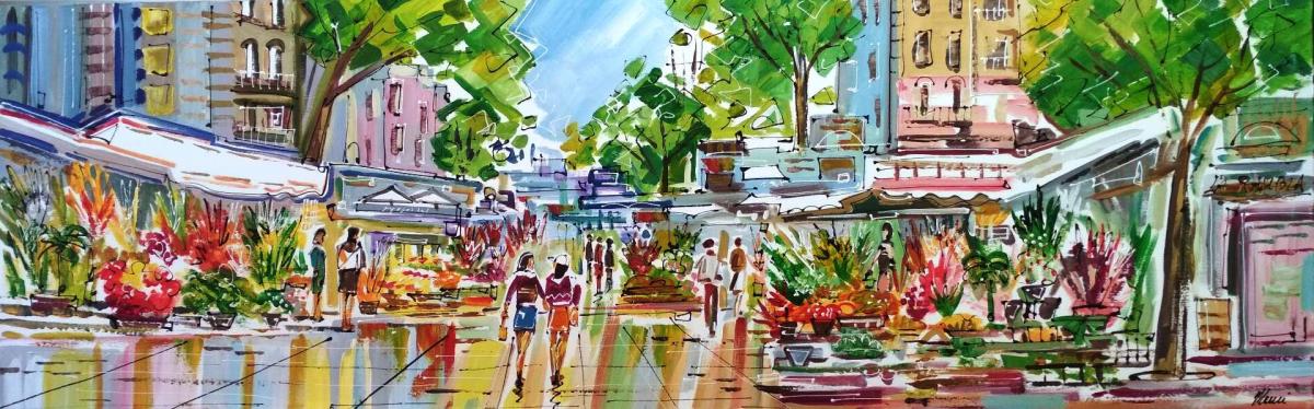 Cuadro Moderno " Flores Rambla Bcn" 150x50