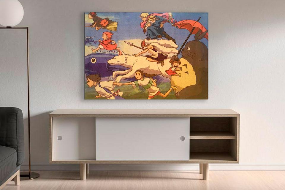 Imagen del conjunto de personajes creados por Hayao Miyazaki, en sus peliculas como "mi vecino Totoro" "El Viaje de Chihiro", "La princesa Mononoke", el Castillo ambulante y otros!