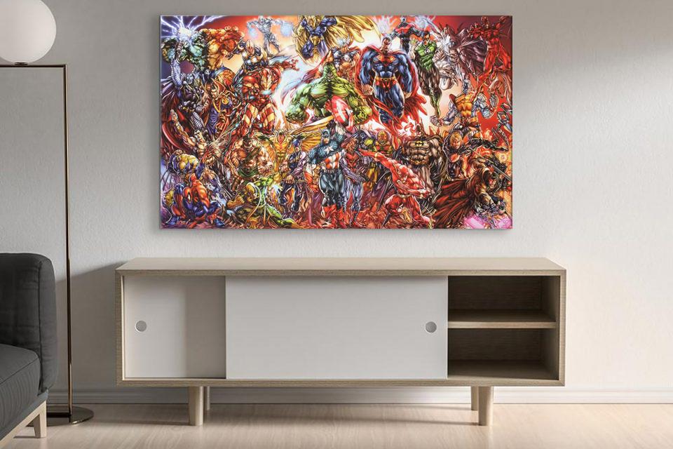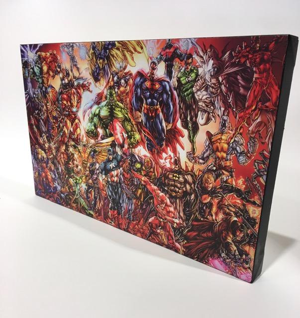 Impresión digital sobre tela montado en bastidor grueso o estrecho de tematica de superheroes de Marvel y DC.