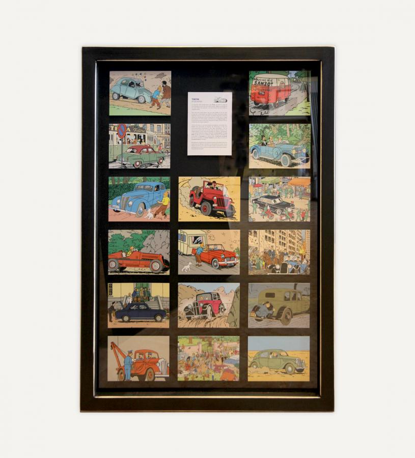 Selección de imágenes de distintos coches que aparecen en las aventuras de Tintín.