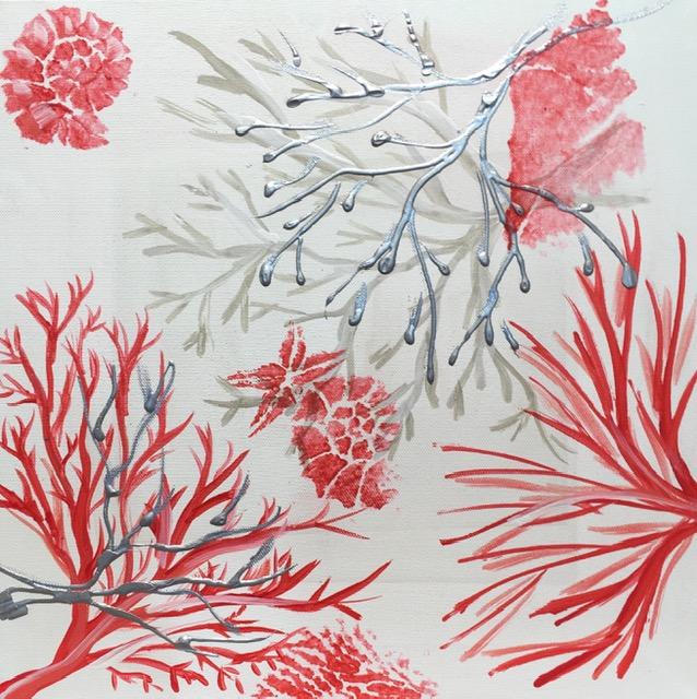 Tonalidades en coral, frambuesa,y relieves de plata.