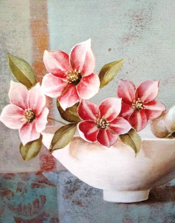 Foto laminada sobre madera. Combinación de dos tipos de flor como son la Zinia y Flor de Almendro.
