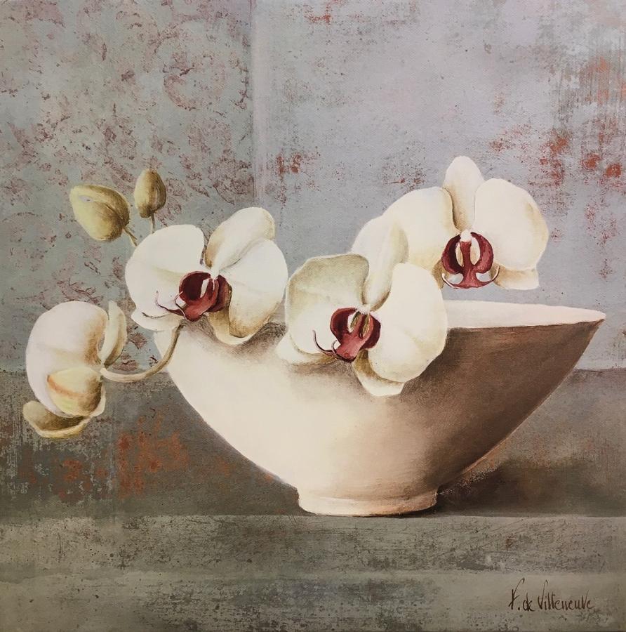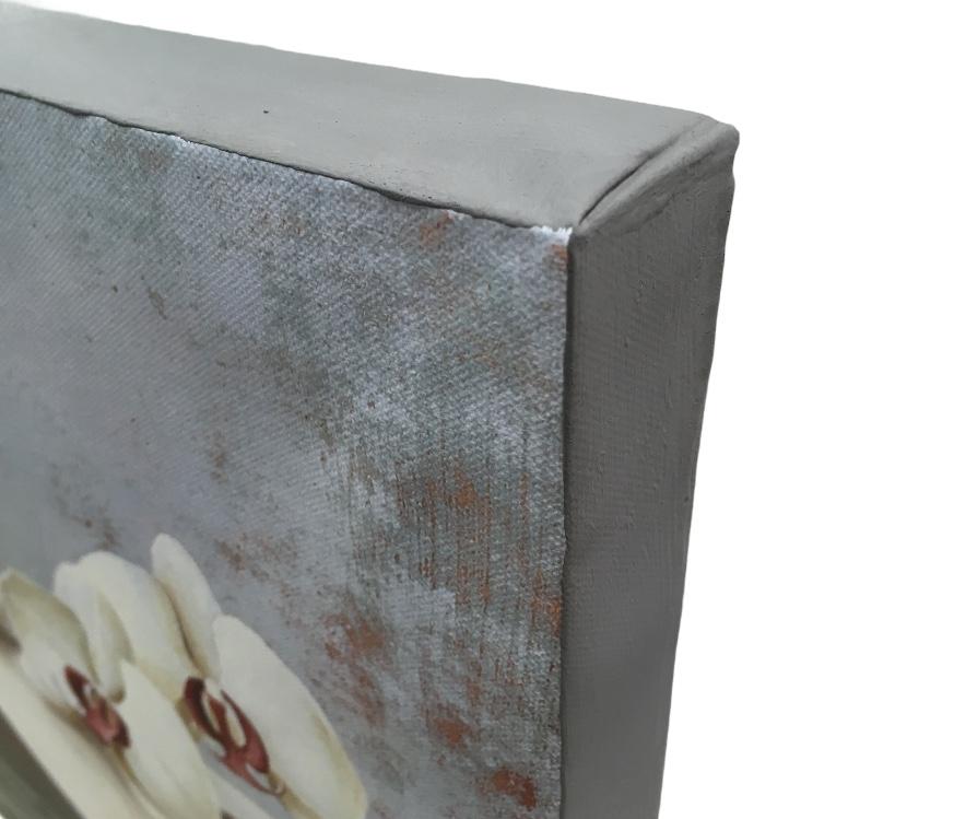 Cuadro de jarrón con orquídea, realizado sobre lienzo y montado en bastidor grueso.