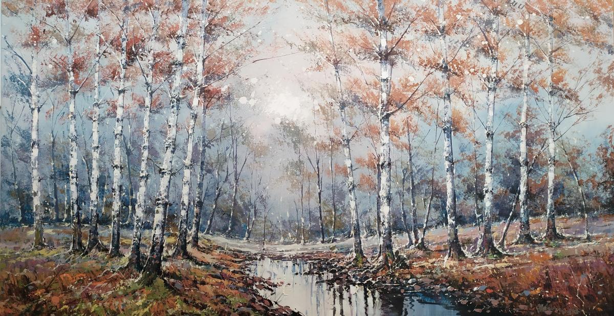 Cuadro original moderno, representación de un bosque.